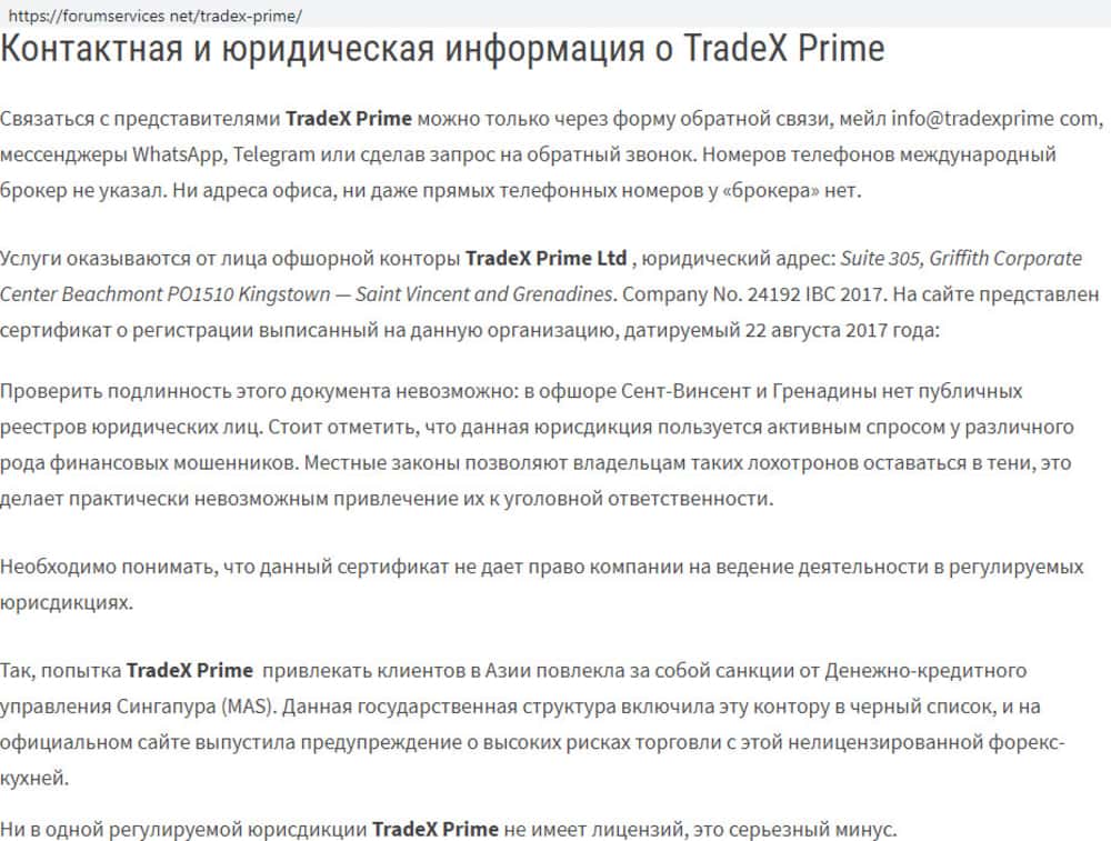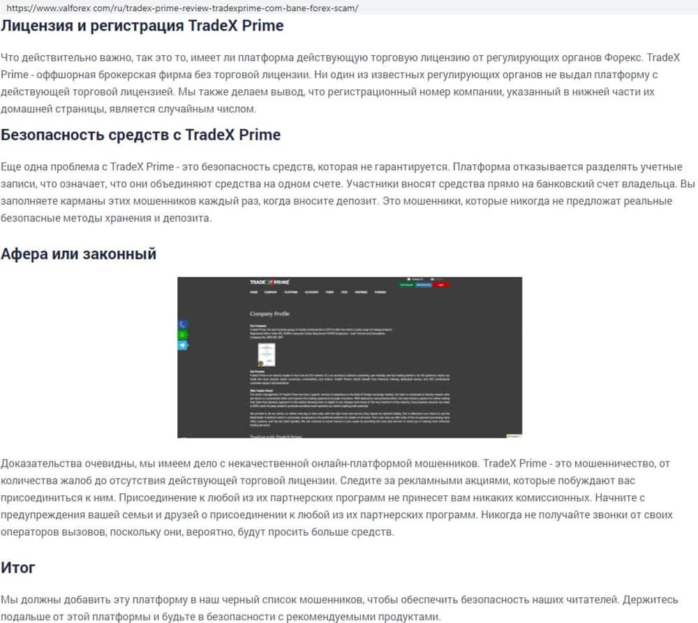- Легальность аферистов Трейд Икс Прайм вызывает сомнения