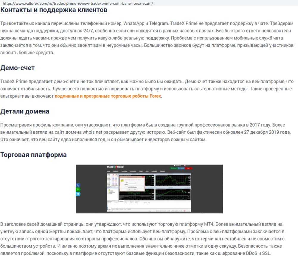 Как отмечает интернет-портал валфорекс ком, количество жалоб от трейдеров, обманутых лоховозкой TradeXPrime, стремительно растет. И это при том, что сам проект сделан далеко не качественно. Мошенники только недавно переметнулись на русскоязычную аудиторию, до этого обворовывая трейдеров в Европе, поэтому им удалось привлечь новичков.