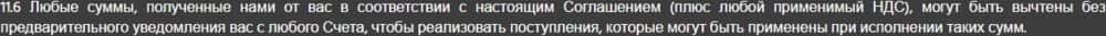 Конечно деревянный перевод пользовательского соглашения на лжесайте TradeXPrime оставляет желать лучшего, но некоторые опасные моменты заметить удалось. Например, жулики TradeXPrime утверждают, что в любой момент могут списывать со счетов трейдеров некие суммы. Для чего - непонятно вследствие кривого текста.