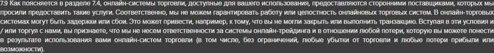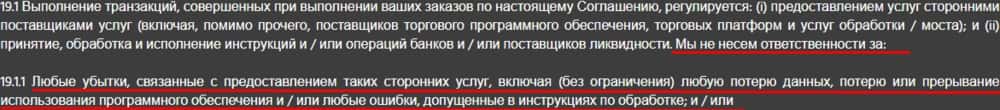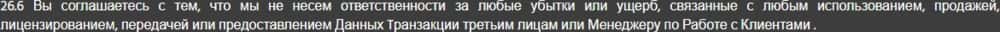 Аферисты полностью построили свой недопроект на использовании сторонних поставщиков всех своих псевдоуслуг. Ответственность конечно же никакую они брать на себя за весь этот лохокомплекс не хотят. По их словам, любые убытки, которые понесет трейдер в результате работы этого лжесервиса - полностью его проблемы.