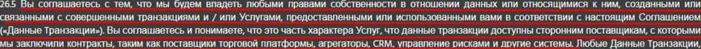 Авантюристы Трейд Икс Прайм утверждают, что должны обладать правами собственности на персональную информацию пользователей. Среди таких данных, жулики упоминают и информацию о транзакциях, а значит платежных реквизитах, которыми по их заявлению они с радостью делятся с некими агрегаторами, CRM и другими сомнительными системами.