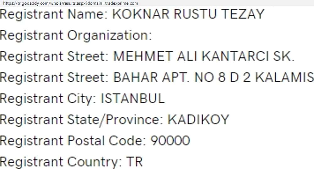 - Koknar Rustu Tezay - владелец доменного имени лохопроекта TradeXPrime.