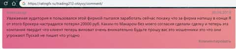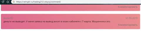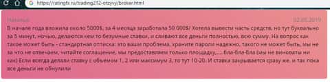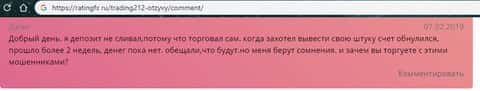 Негативный отзыв о лохотроне Трейдинг 212 с портала ratingfx ru