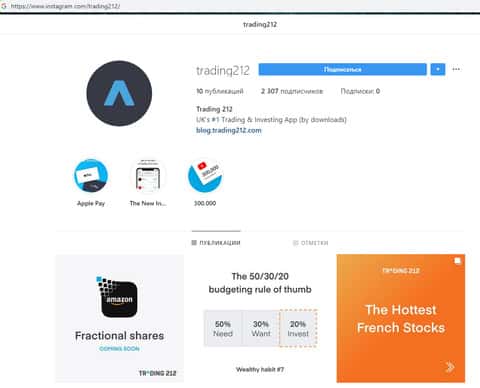 Так же шулера Trading 212 обзавелись страницей в нынче популярной социальной сети Instagram, где аферисты Трейдинг 212 имеют всего пару тысяч подписчиков, не проявляющих по отношению к аккаунту мошенников Trading 212 никакой активности, что свидетельствует о создании данной страницы лохотроном Трейдинг 212 исключительно для виду. Итак: