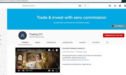 Для размещения различных рекламных видеороликов, или же мотивационных с лапшой на уши наивным пользователям шулера Трейдинг 212 обзавелись аккаунтом в социальной сети YouTube, где мошенники Trading 212 решили напрячься и потратили довольно много средств на накрутку несколько сотен тысяч подписчиков, которые не проявляют никакой активности. Итак:
