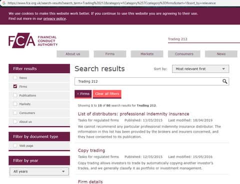 Несмотря на огромное количество лапши со стороны аферистов Trading 212 по поводу своей надежности и прибыльности, а так же их очередных уникальных "чудо" технологий, никакой информации относительно их лицензии или же регулирования на сайте регулятора найти не удалось. На изображении, расположенном ниже, вы можете результаты поиска шулеров Трейдинг 212.