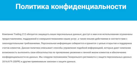 Политика конфиденциальности у аферистов Трейдинг 212 начинается с довольно стандартной и банальной информации о том, кто это за документ и зачем он нужен. Данная информация не несет в себе никакой смысловой нагрузки, однако это лучше чем ничего. На изображении, расположенном ниже, вы можете увидеть начало политики конфиденциальности шулеров Trading 212.