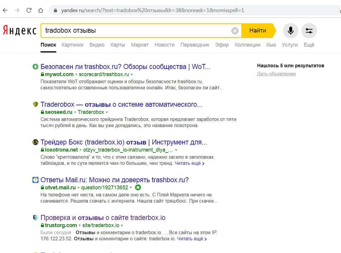 Информация о домене trаdobox com не вызывает доверия