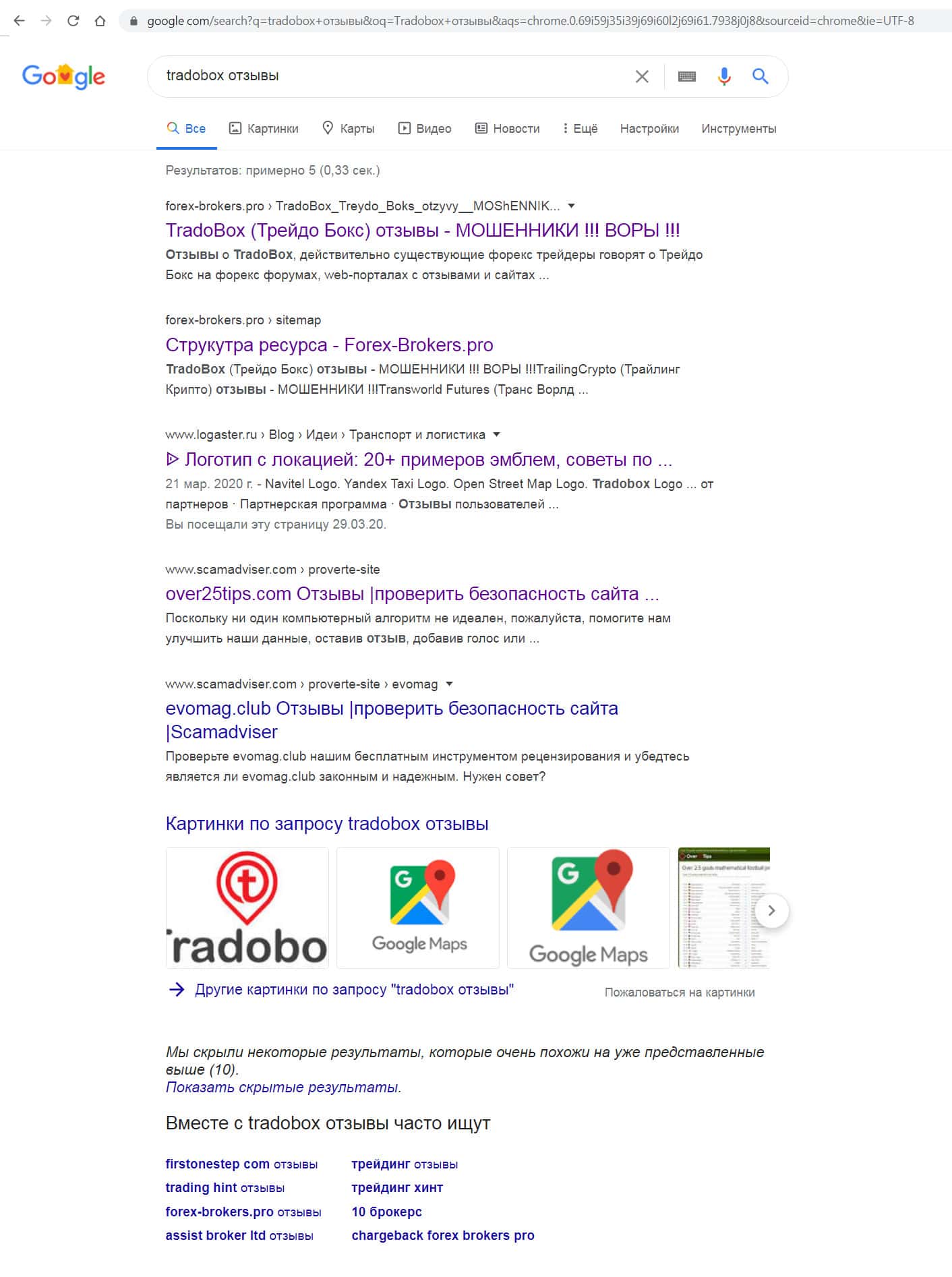 Как видим выше, поисковая система Яндекса не находит информацию про отзывы о брокере ТрейдоБокс, но поиск в Google так же не приносит положительных результатов - в глобальной сети интернет о компании TradoBox не знают.