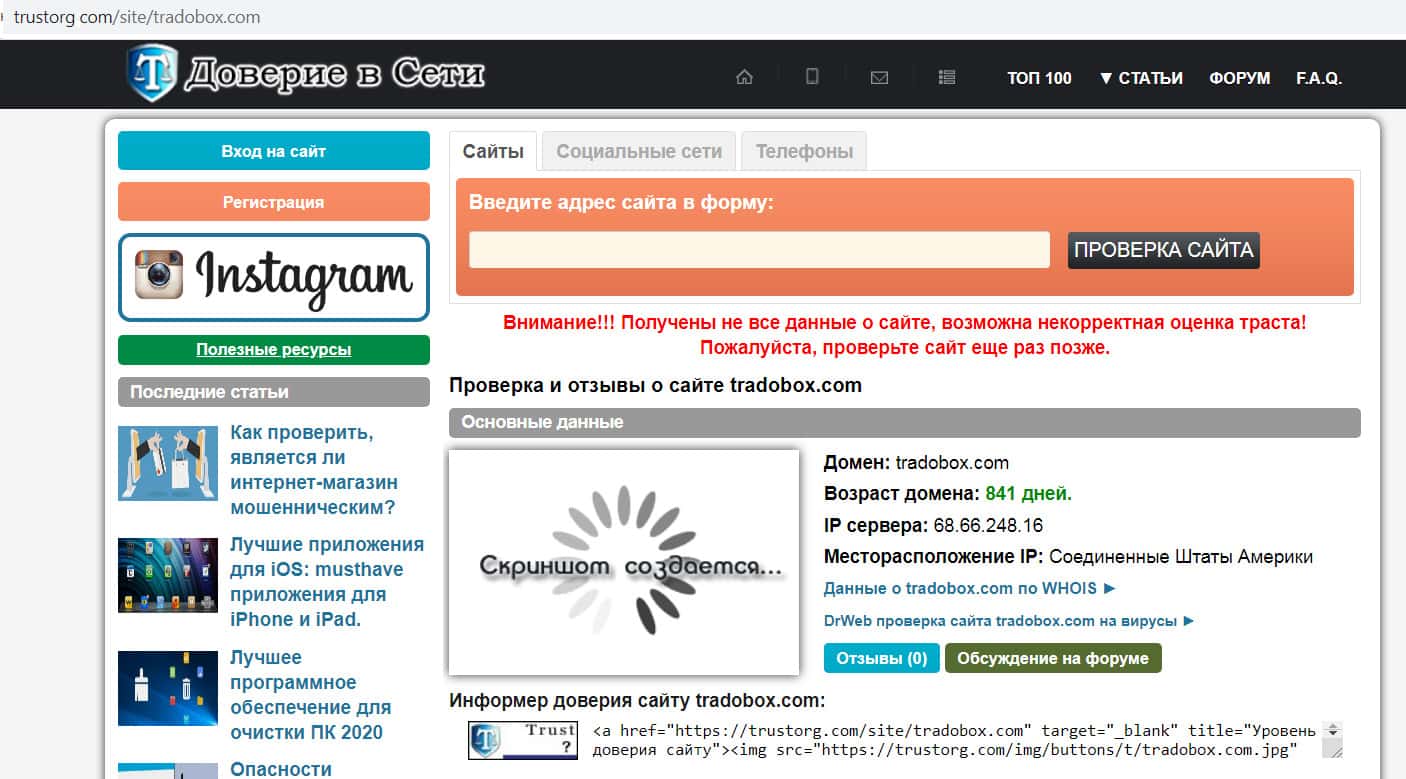 - Информация о домене trаdobox com не вызывает доверия