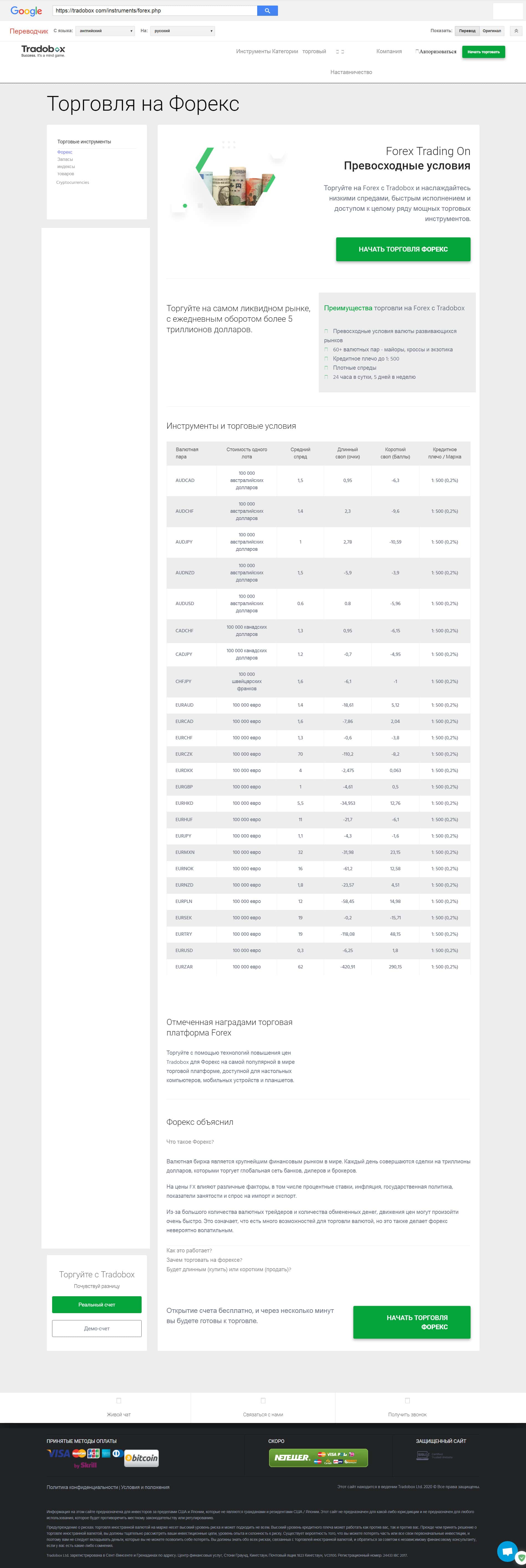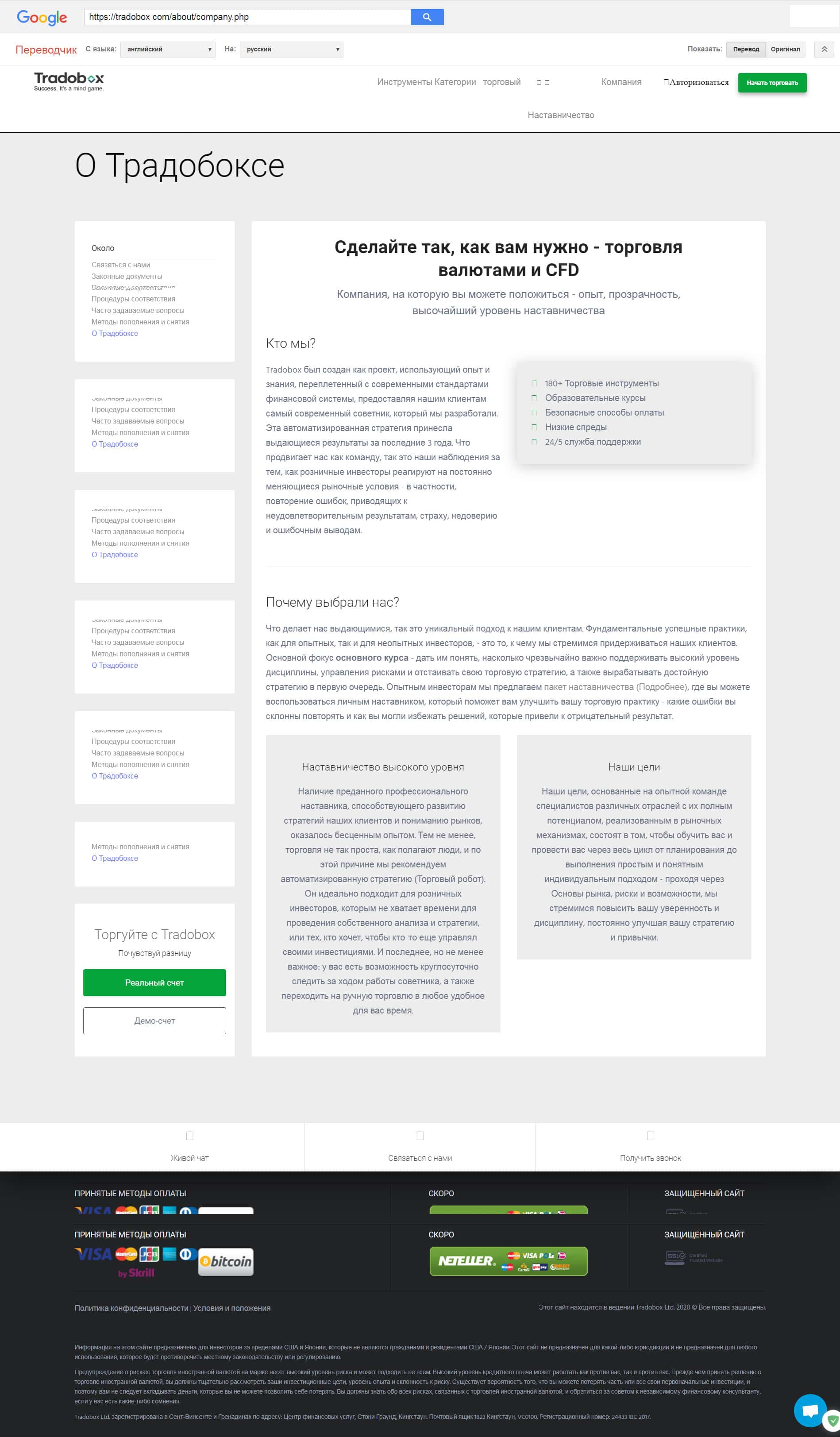 - Обзор официального web-cайта forex брокера Trado Box