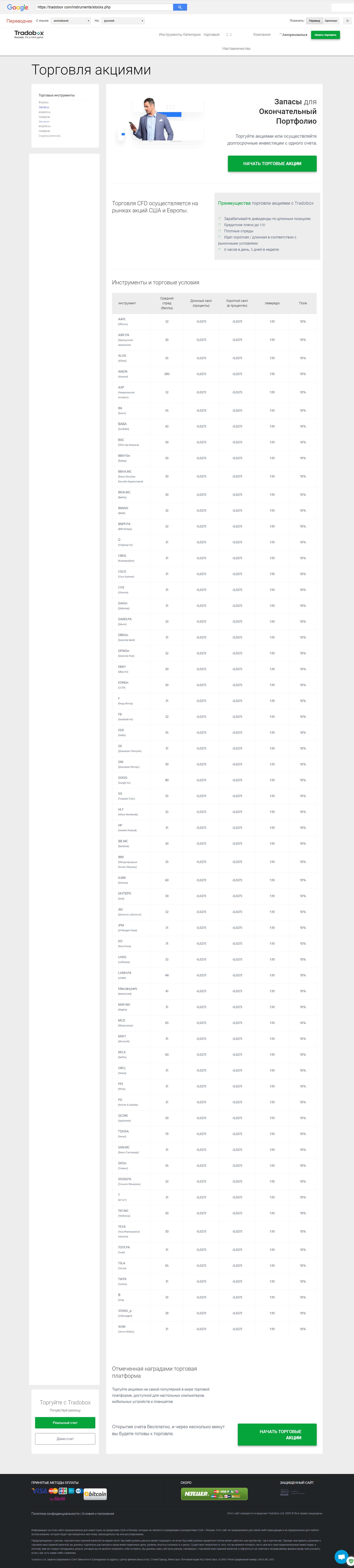Затем описана торговля акциями, подраздел этот называется запасы. Здесь также как и в предыдущем пункте просто перечислены все возможные достоинства их платформ. Но сути это не меняет, прежде чем вкладывать деньги, надо убедиться в честности компании, однако ТрейдоБокс не вызывает у нас доверия.