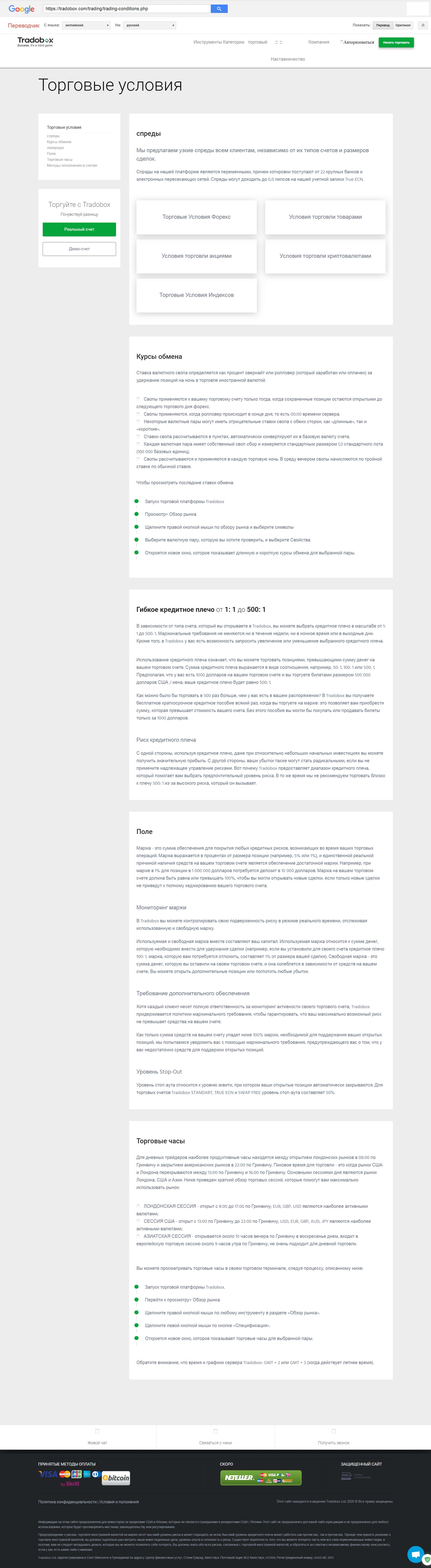 Третий раздел официального интернет-сайта конторы ТрейдоБокс содержит материалы, описывающие торговые условия на различных инструментах, рассмотренных выше на страничке. Верить написанному или нет это дело личное, но мы настоятельно рекомендуем не связываться обманщиками.