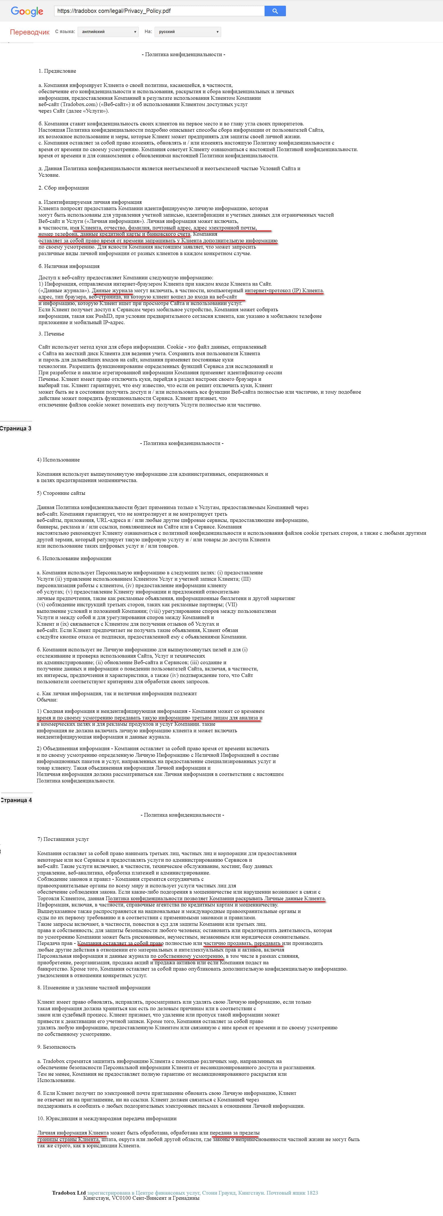 Подписав политику конфиденциальности в конторе ТрейдБокс клиент соглашается передавать личную информацию о себе по первому запросу, дает согласие на контроль его деятельности в сети интернет и на передачу этих данных третьим лицам, если это будет выгодно компании.
