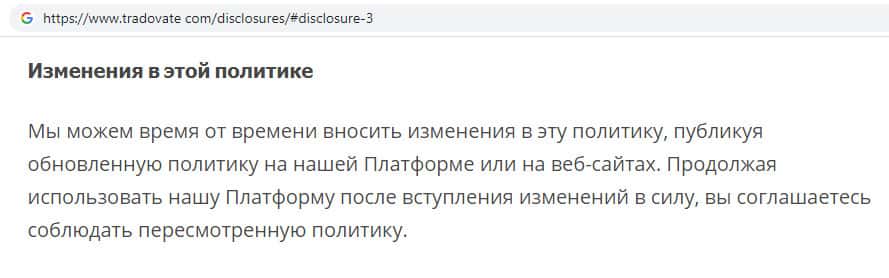 Аферисты Tradovate имеют право изменять правила пользования сайтом без предварительного уведомления об этом пользователей сайта.