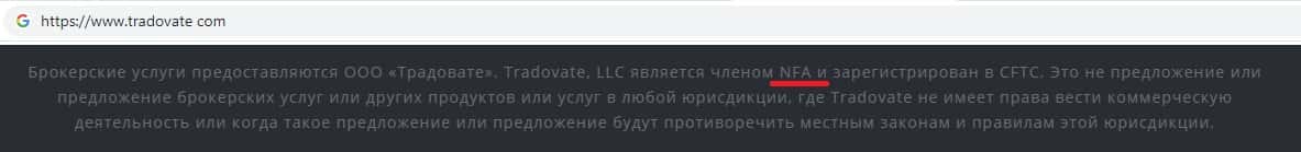 nfa futures org - сайт финансового регулятора указанного на сайте Tradovate
