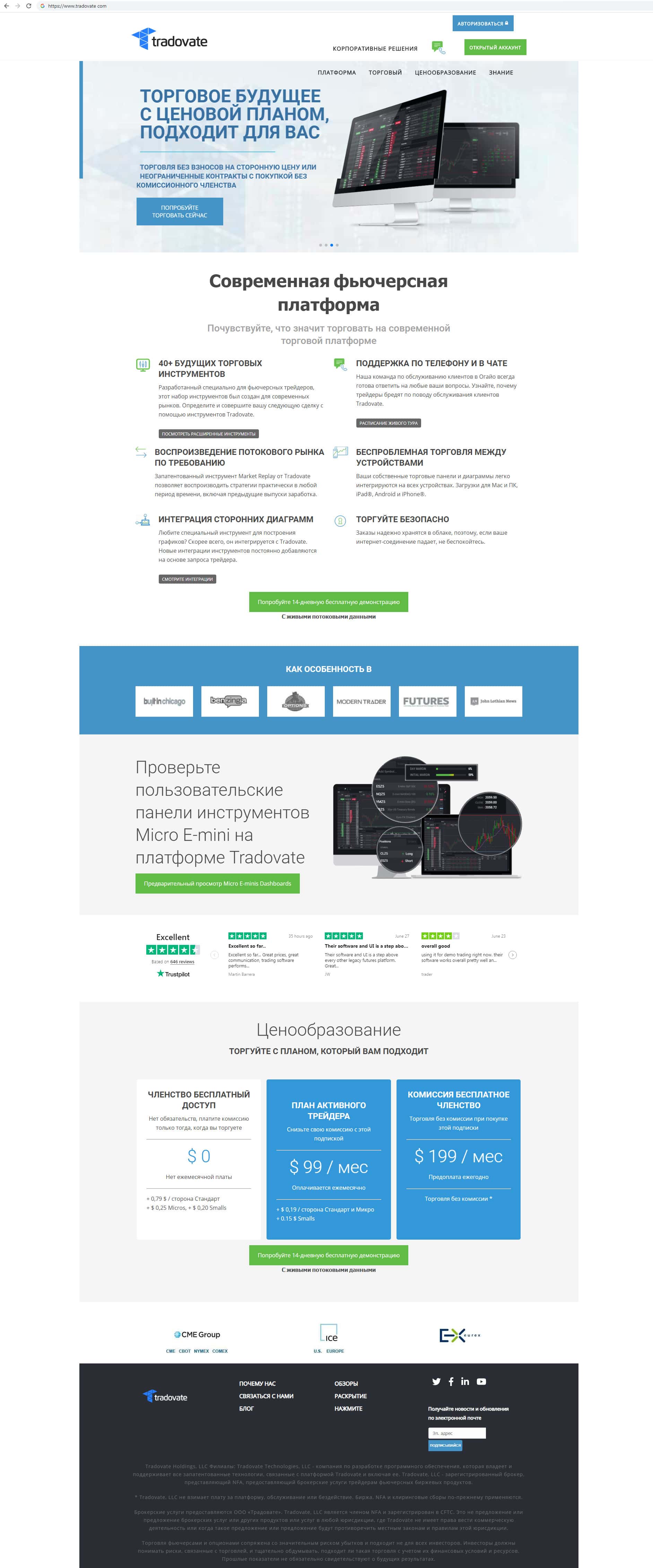 В данном разделе предлагаем увидеть скрин главной веб-страницы онлайн-ресурса скам-организации Tradovate, помните о том, что такие проекты очень быстро скамятся.