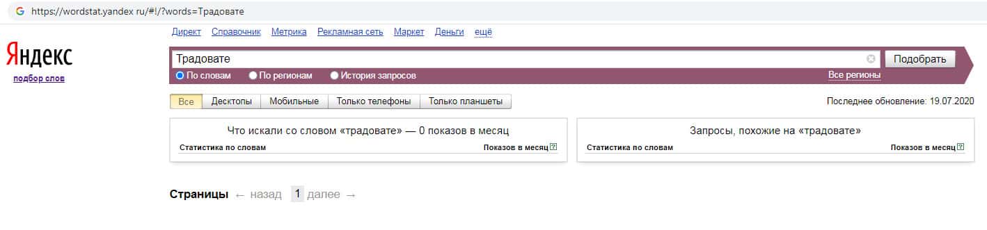 Так же судя по всему в Яндекс поисковике никто не искал данную скам-организацию вводя название конторы на русском языке, а именно "Традовате".