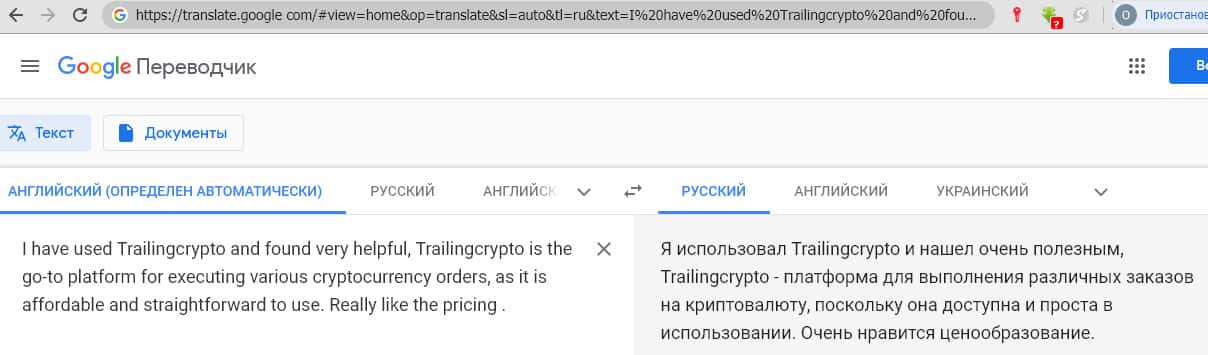 - Единственный отзыв о криптоторговой конторе Тралинг Крипто на портале trustpilot com, да и тот - проплачен