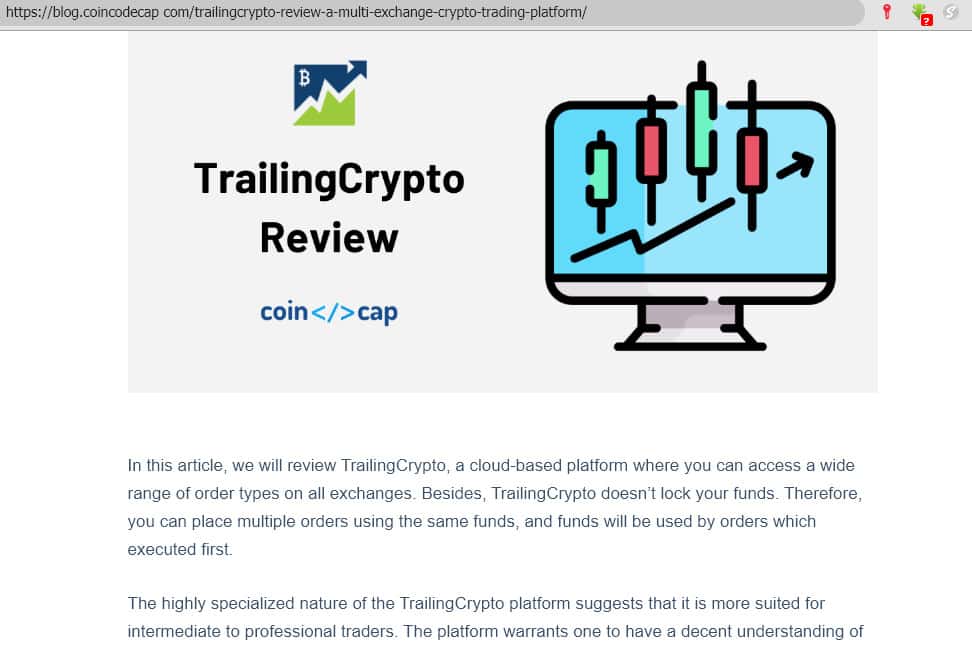 Единственный рекламный обзор криптовалютной торговой площадки TrailingCrypto на портале coincodecap com