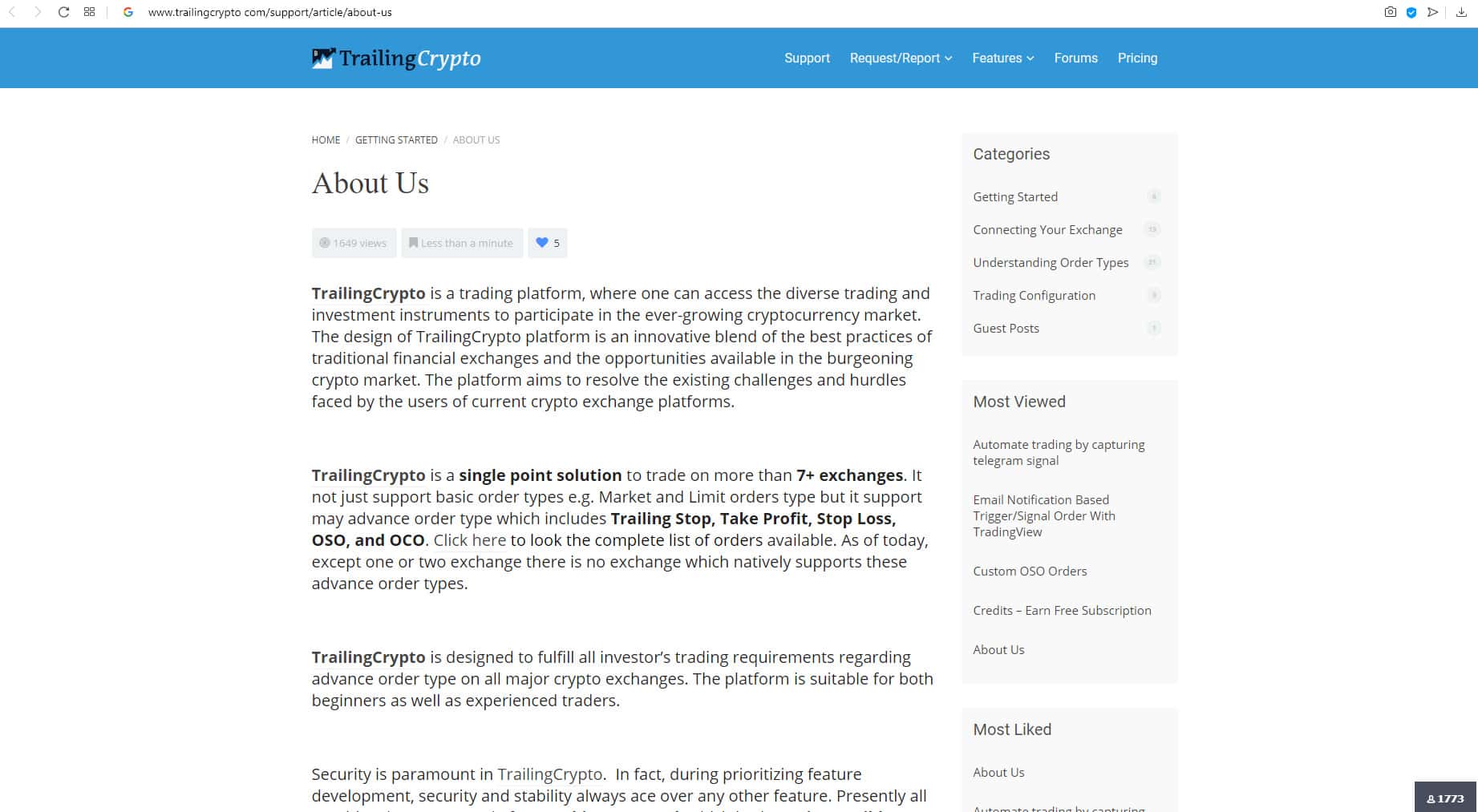 В сети, как с единственным рекламным отзывом, также обстоит дело и с обзором торговой криптовалютной площадки TrailingCrypto. Единственный обзор этого ресурса удалось найти в блоге на портале coincodecap com. Этот рекламный обзор представляет Трайлинг Крипто как унифицированную торговую платформу, позволяющую пользователям торговать на нескольких биржах криптовалюты из единого интерфейса.