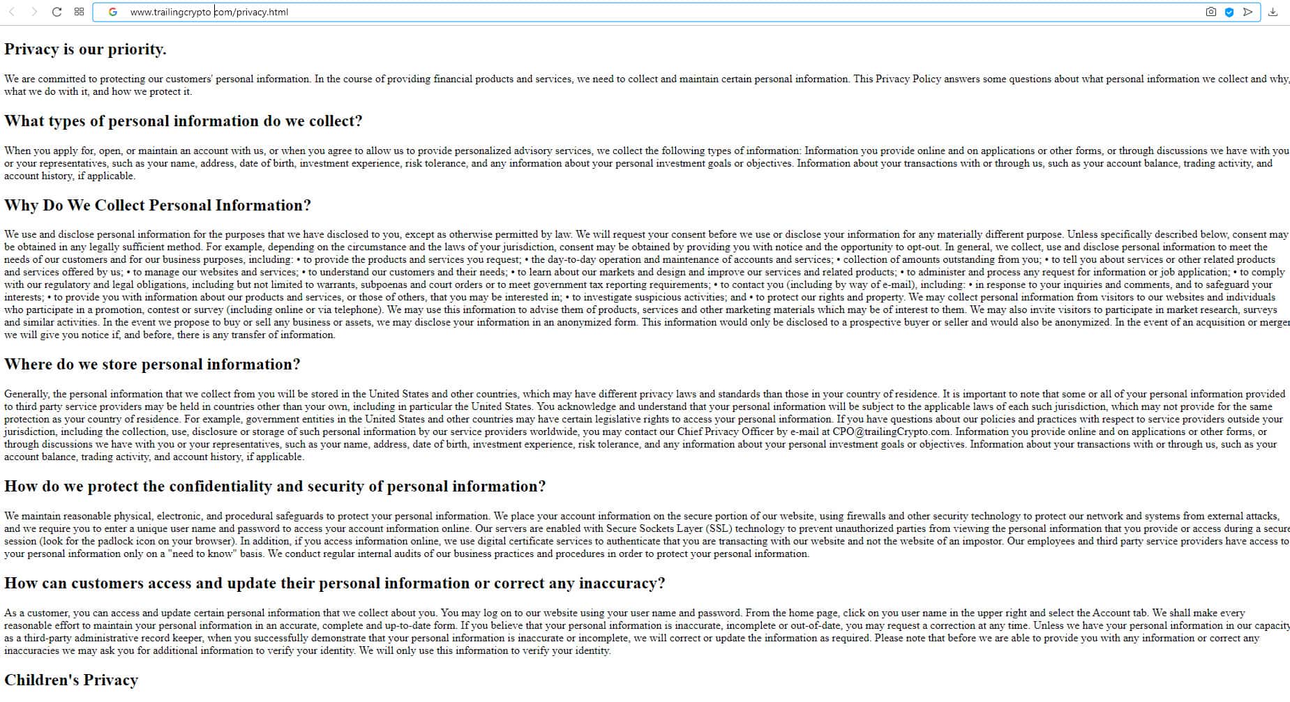 - Политика конфиденциальности на сайте Трайлинг Крипто