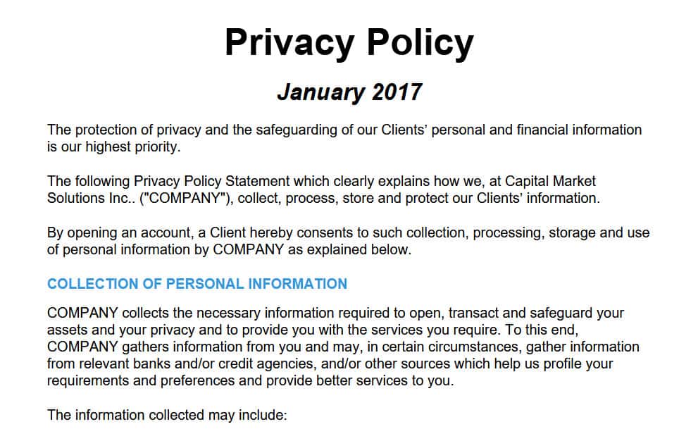 Если коротко, то эта так называемая политика никак не защитит ваши персональные данные, потому что контора изначально мошенническая. Как они могут вообще давать такие гарантии? После того, как они скаманут, ваши данные с большой вероятностью просто передадут третьим лицам и все.