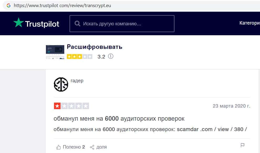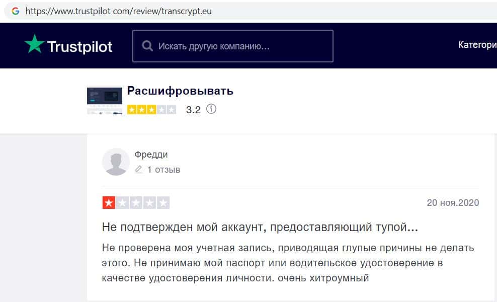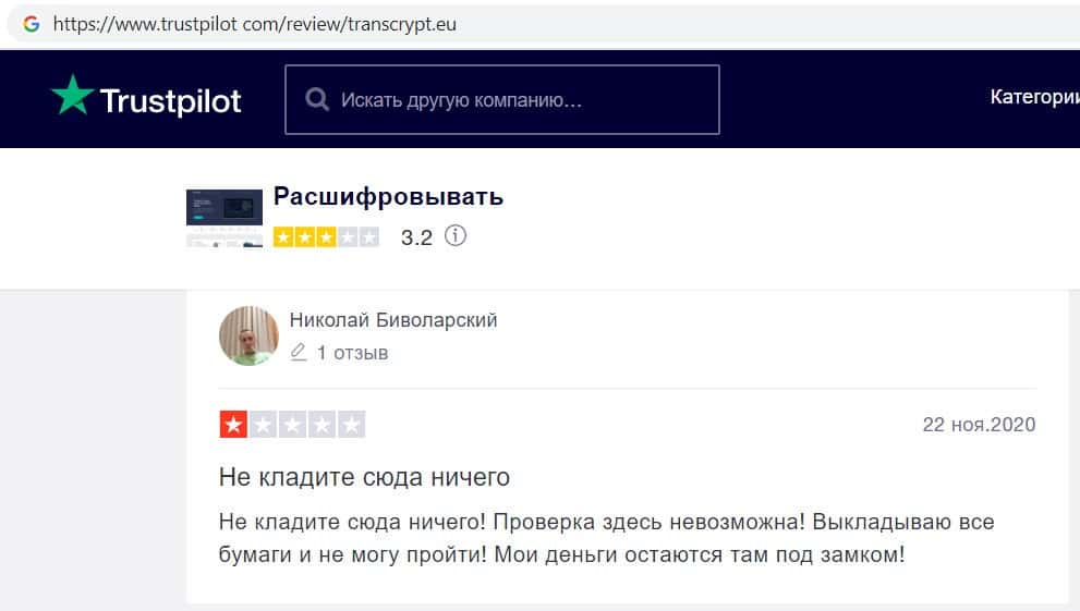 Пользователи не доверяют компании махинаторов transcrypt eu