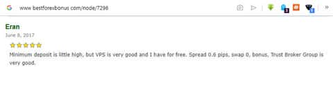 Контора данная довольно серьёзная, в том плане, что мошенники для постоянного притока клиентов не пожалели сил и решили наполнить весь интернет положительными отзывами на самых разных сайтах, но всё это просто слова, ни единой правды. На сайте bestforexbonus рассказывают о беснословной выгоде с сайта TrustBroker, то есть статья заказана и цифры взяты "с неба" для заманухи лохов.