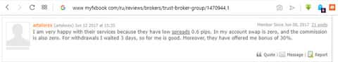 Положительный отзыв о TrustBroker на BestForexBonusAllforexbonus рассказывает подробности работы с мошенниками Траст Брокер