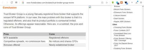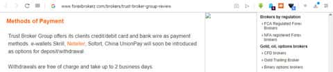 На сайте forexbrokerz разобраны все детали принципа работы сервиса-мошенника TrustBroker. Единственный минус данной статьи в том, что всё преимущественно наталкивает вас на то, чтобы вы начали работу с брокером, о котором идёт речь. В ней говорится, что для того, чтобы использовать как можно больше услуг для заработка, надо побольше вложить денег, то есть отдать мошенникам.
