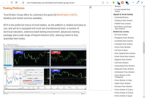 Слова от forexbrokerz о надежности брокер-сервиса TrustBrokerПлатформа для трейдинга у данного брокера ТрастБрокер - MT4