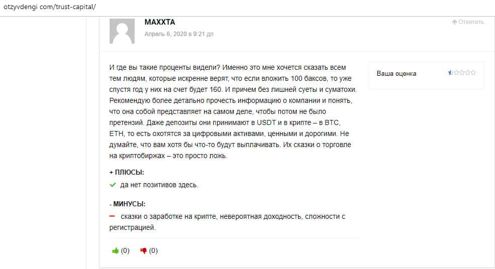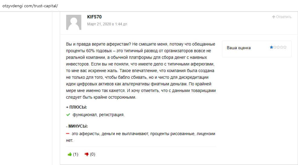 - Минусы работы мошеннической крипто-кухни Траст Капитал Групп