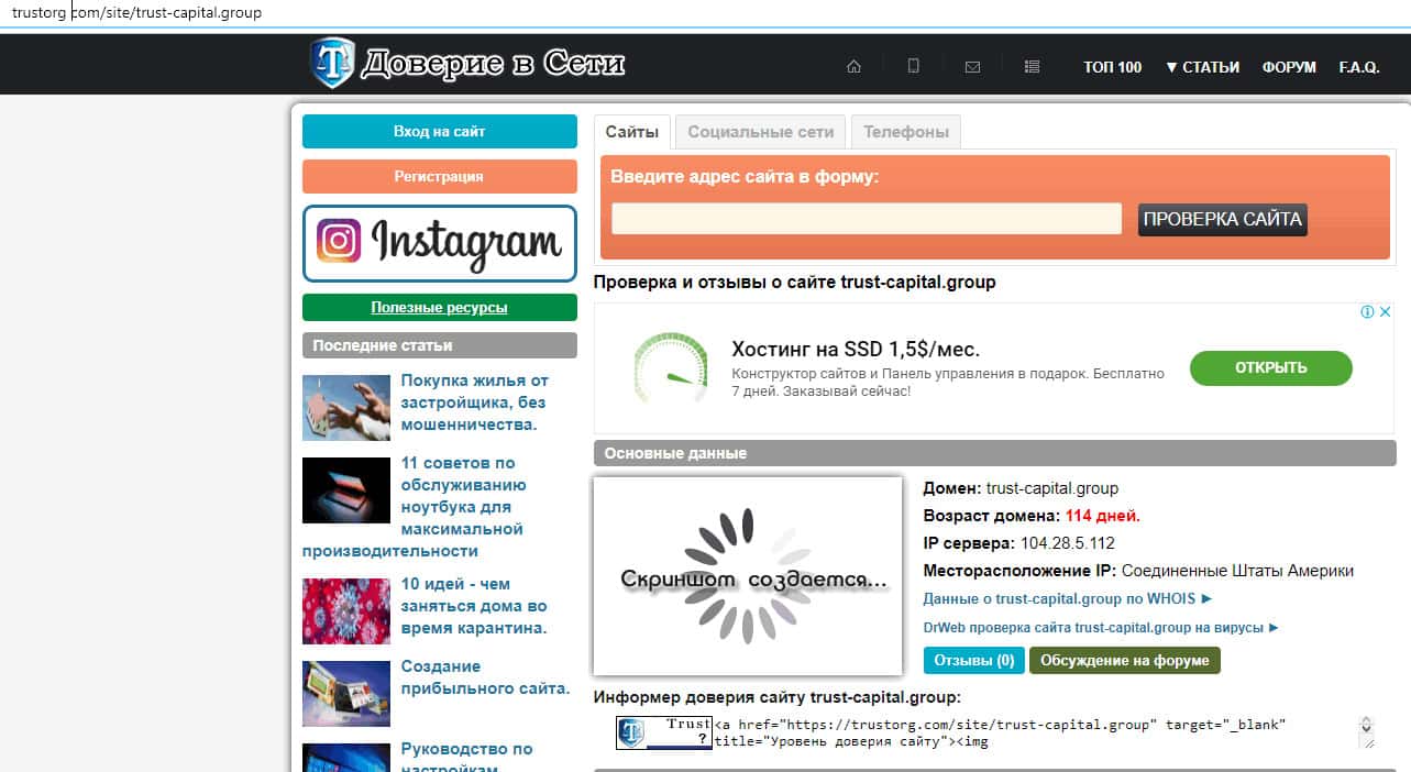 Судя по информации, касательно домена сайта конторы Trust Capital Group, развенчивается миф, что они работают с 2017 года. На самом деле их сайту нет даже полгода, поэтому о многолетнем опыте работы не может быть и речь. Так что не нужно врать клиентам и вам не советуем связываться с этой шарагой.