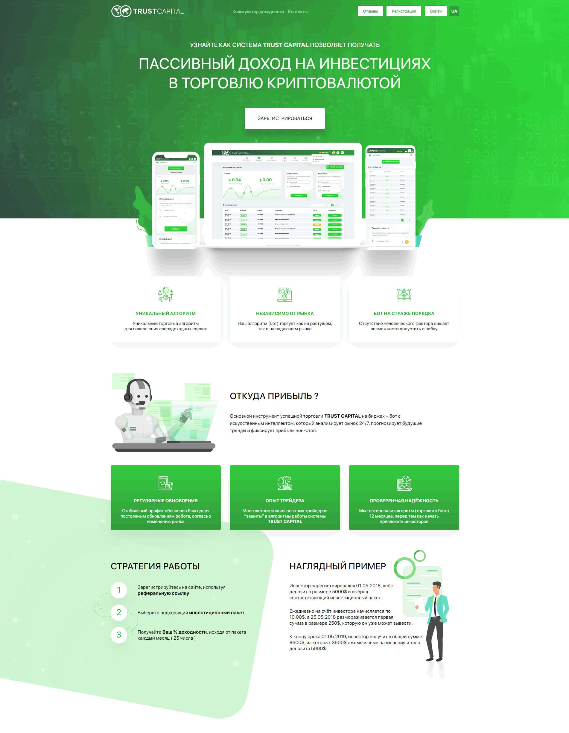 Шулерская организация Траст Капитал Групп создала себе сайт-одностраничник, который должен был вместить в себя все разъяснения об услугах, но на самом деле у них не получилось. Жулье пожалело денег и теперь не понятно по сути, что они предлагают. Единственное понятно, что они хотят забрать деньги у клиентов.