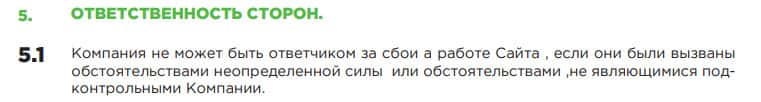 Самый интересный раздел в договоре конторы Траст Капитал Групп это Ответственность сторон. Жулики именно там скрыли самые большие подводные камни. Там сказано, что лохотрон не может быть ответчиком за то, что их сайт работает со сбоем и из-за этого клиент потеряет деньги.