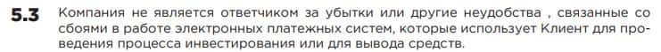 Также лохотрон Trust Capital Group не отвечает за то, что клиент может понести какие-либо убытки при сотрудничестве с ними. Эти убытки могут быть связаны с платежами, а также сбои в самой системе личного кабинета клиента. Так что если пропадут деньги с вашего инвестиционного счета, то пеняйте на себя.