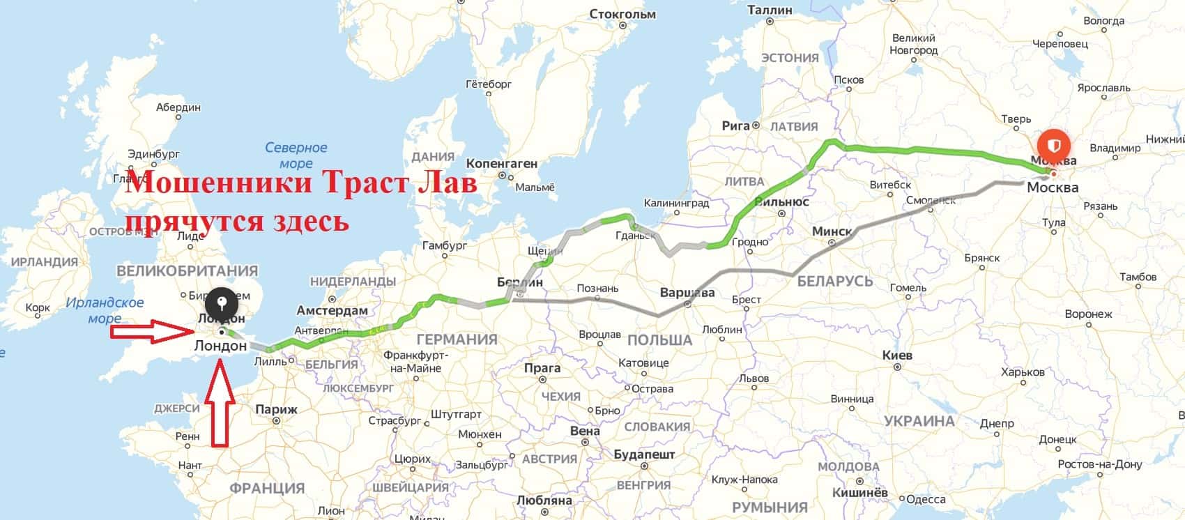 На официальном сайте реестра компаний Великобритании beta companieshouse gov uk есть информация о том, что Траст Лав на самом деле зарегистрирована не в Лондоне.