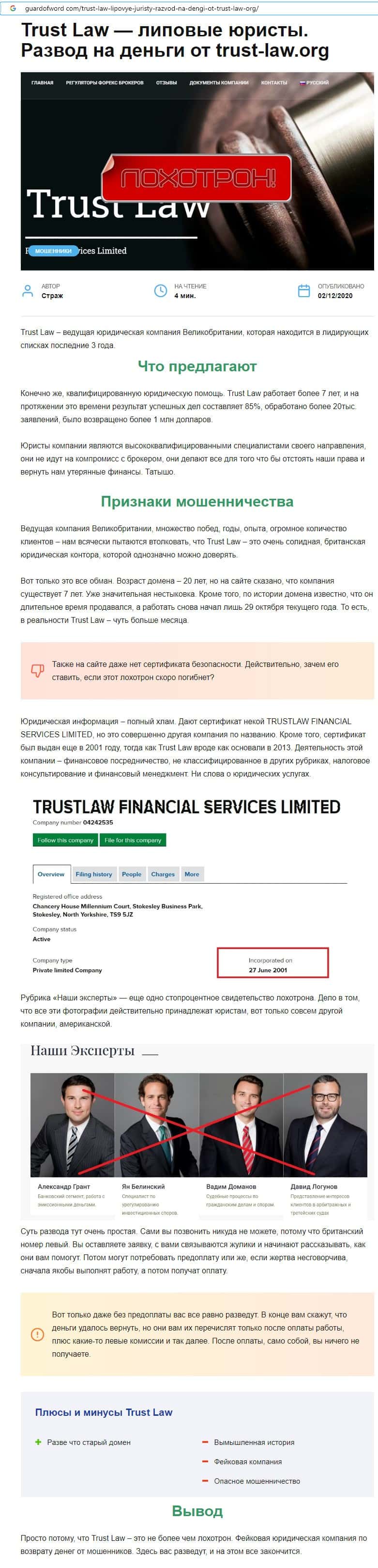 Мошенники Trust Law на своем дырявом сайте опубликовали вымышленную историю компании, на самом деле это развод на деньги.