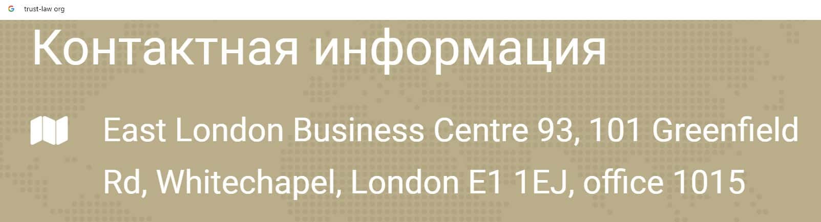 Сведения о месте регистрации Trust-Law фальшивы, так как большинство мошеннических проектов у себя на сайте указывают адрес в Лондоне для приманки очередного лоха.