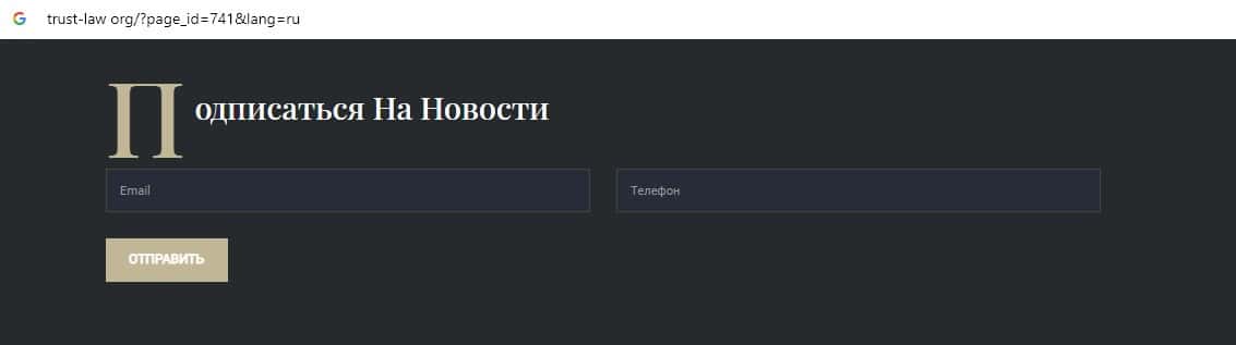 Жулики Trust Law предлагают подписаться на новости компании, указав только лишь адрес электронной почты, чего делать категорически не рекомендуем !!!