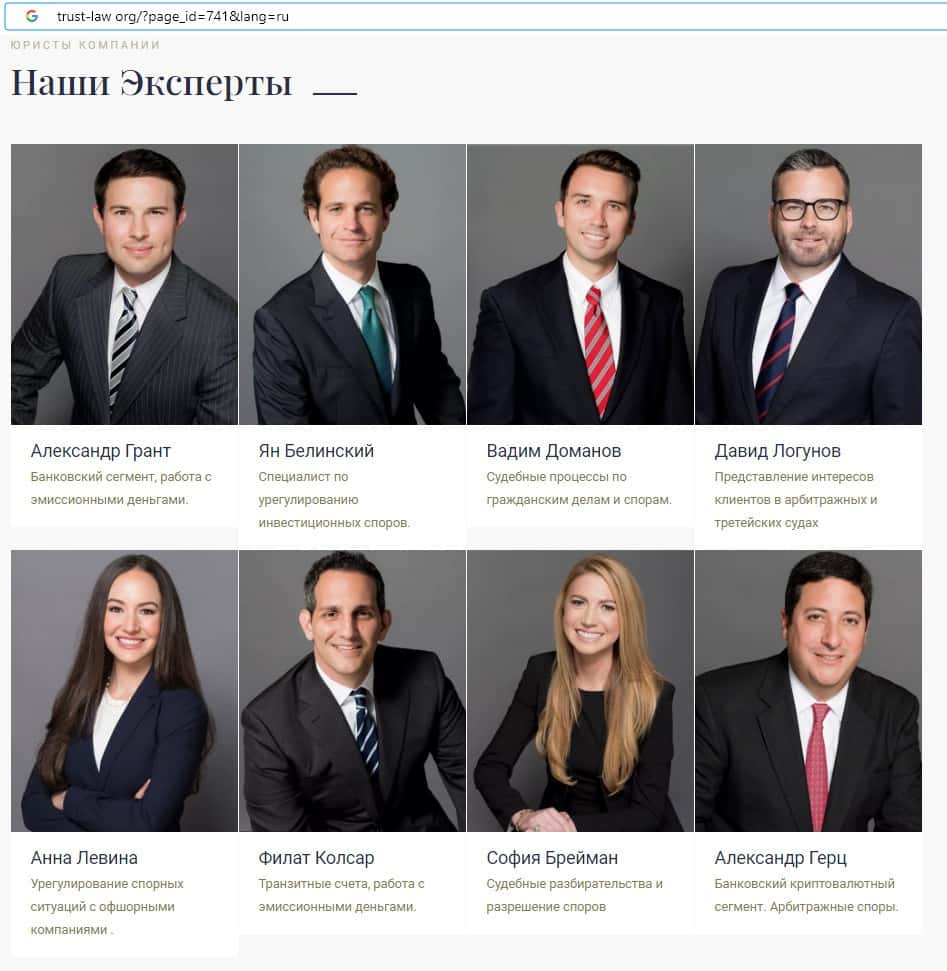 Мошенники Trust Law предоставляют вероятно фальшивую информация о руководстве, но точно знать о том, кто на самом деле руководит скам-проектом мы не можем.