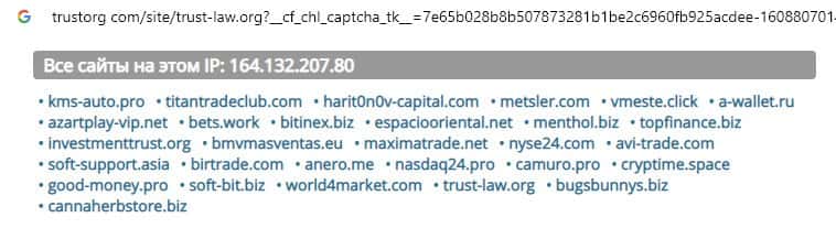 Шулера Trust Law находятся на одном IP-адресе со скам-брокером Титан Трейд Клуб, который вешает лапшу на уши притворяясь честной и надежной компанией.