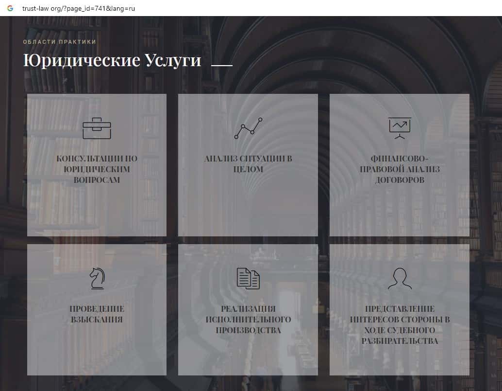 Услуги предлагаемые на веб-сервисе аферистов Trust Law