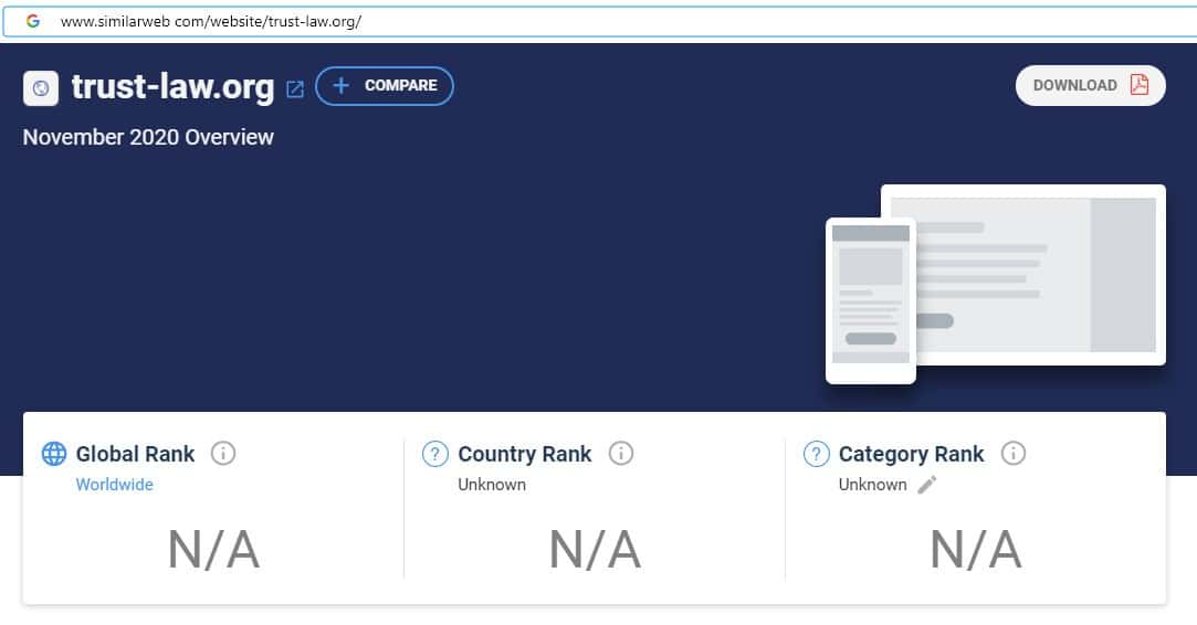 При проверке источников бренда по странам скам-компании Траст Лав на сайте similarweb com, информация отсутствует, что является признаком фейкового лохотрона.