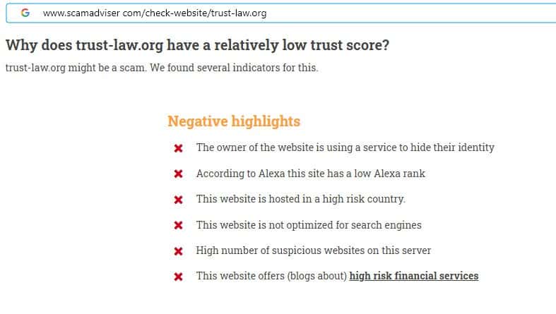 Шулера Trust Law вероятнее всего подчищают информацию о своей организации, поскольку во всемирной паутине практически нет реальных отзывов, а все положительные купленные.