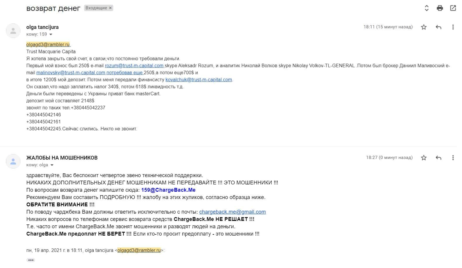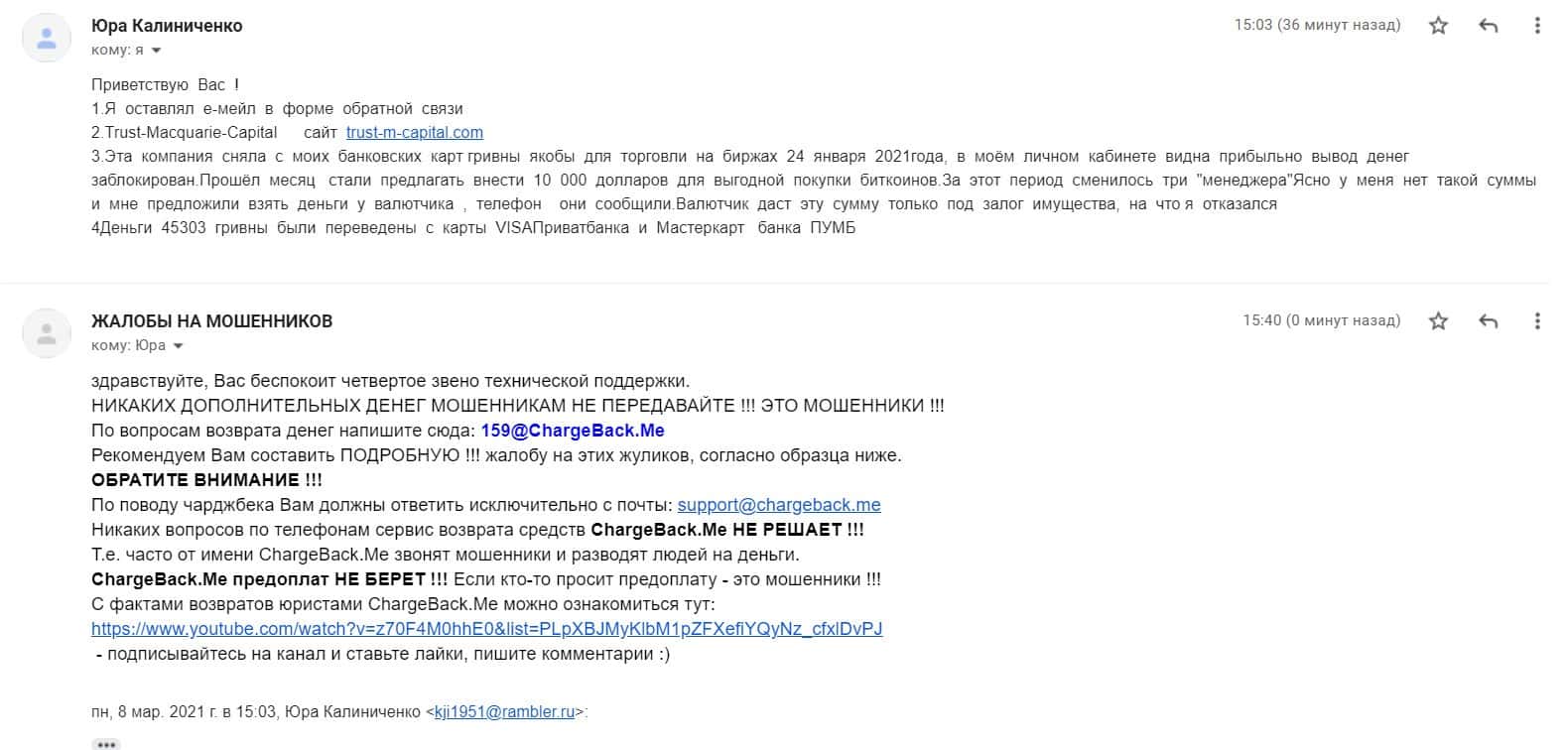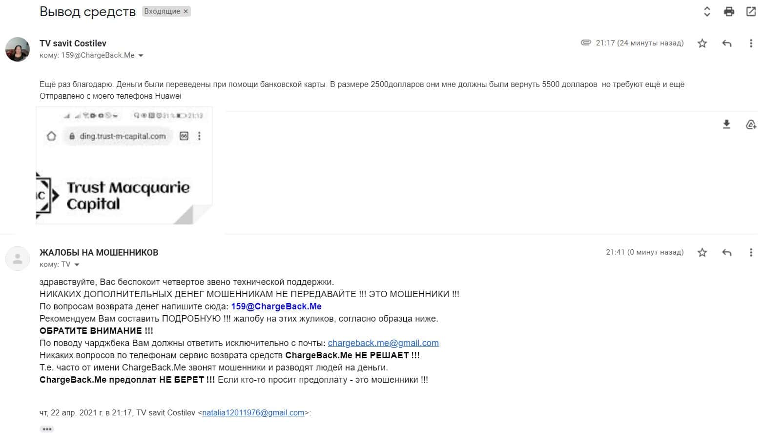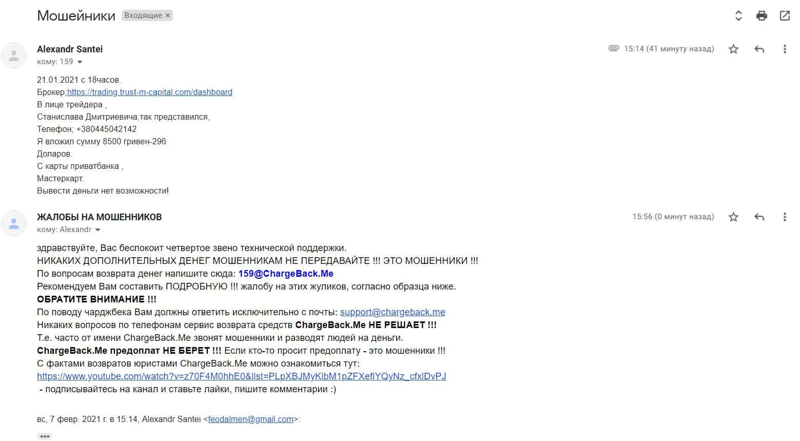 Ниже предоставлена жалоба на обманщиков Траст М Капитал, которые обманули клиента на деньги, а именно на 5661 доллара США.