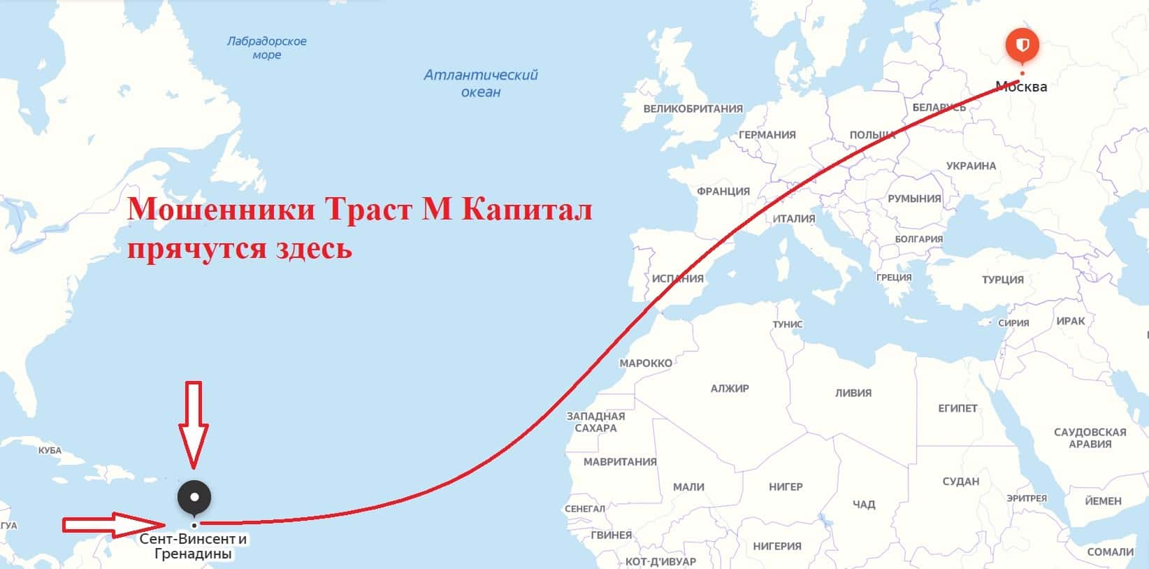 Местом регистрации скам-брокера Trust Macquarie Capital является остров Сент-Винсент и Гренадины, где зарегистрировано огромное количество аналогичных лохотронов.