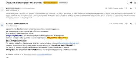 Перед вами жалоба клиента мошеннической конторы Траст М Капитал, которая обманула клиента на 29 785 долларов США и не вывела ни копейки.