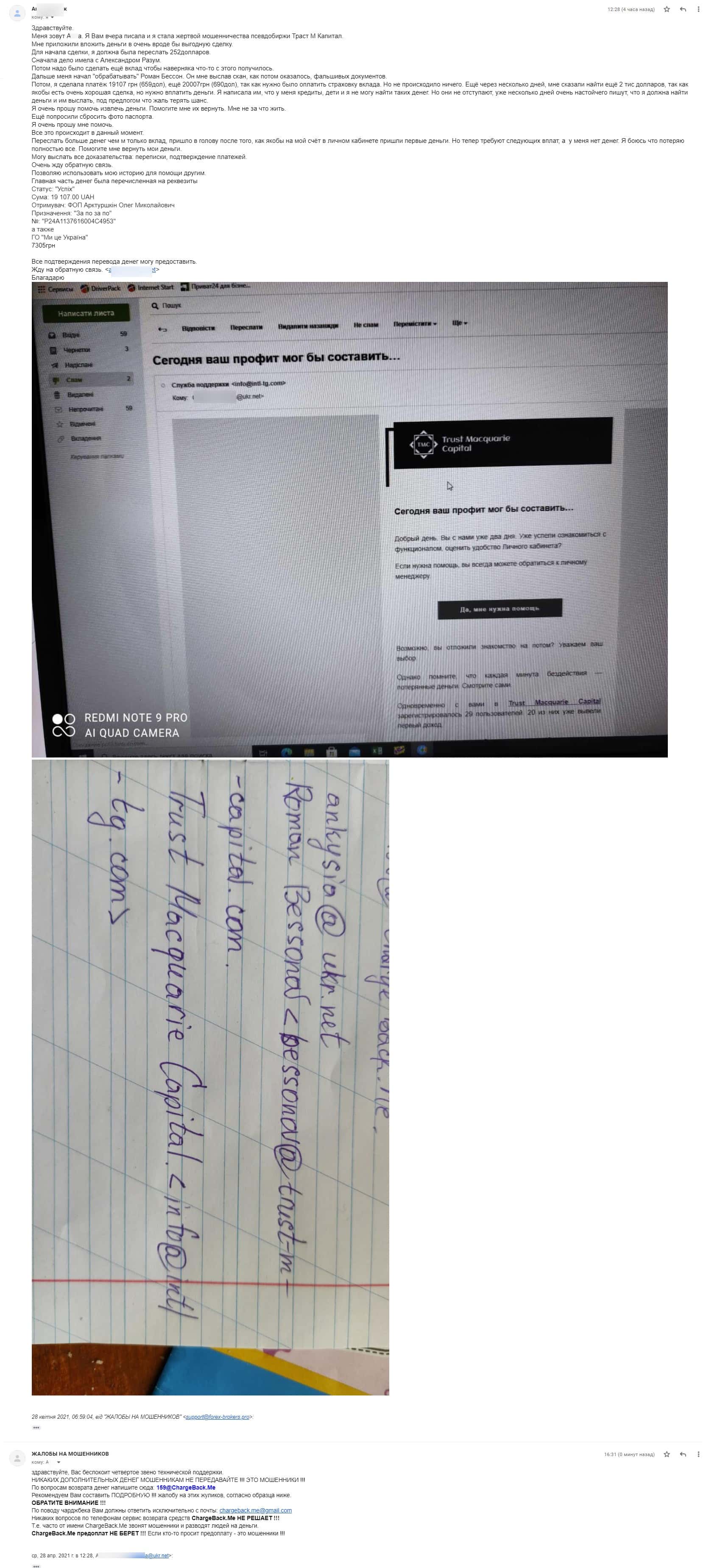 Ниже предоставлена жалоба от очередной пострадавшей клиентки на скам-организацию Траст М Капитал, которая ее обманула на 296 685 гривен.